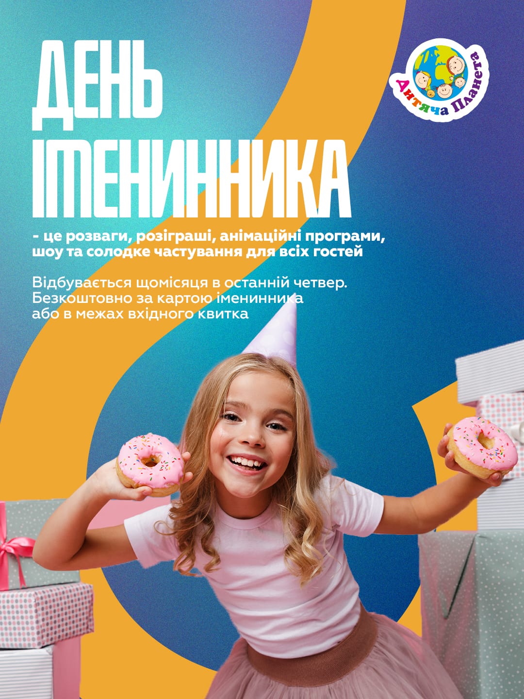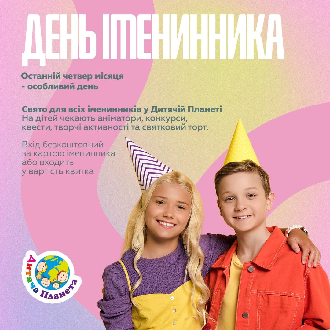 Дитяча Планета – унікальний парк розваг з площею 3000 м² для дитячих свят і Днів Народжень. Тут безліч атракціонів, безпечні ігрові зони, сучасні дитячі кімнати та батути для веселощів