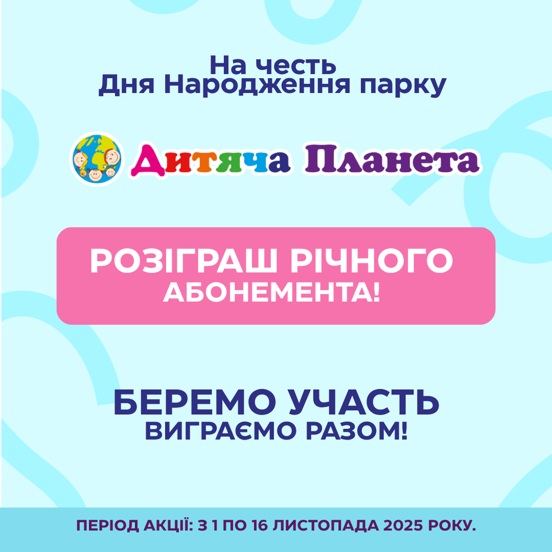Головний приз — річний абонемент на безлімітне відвідування Дитячої Планети у будь-який день і час🥰