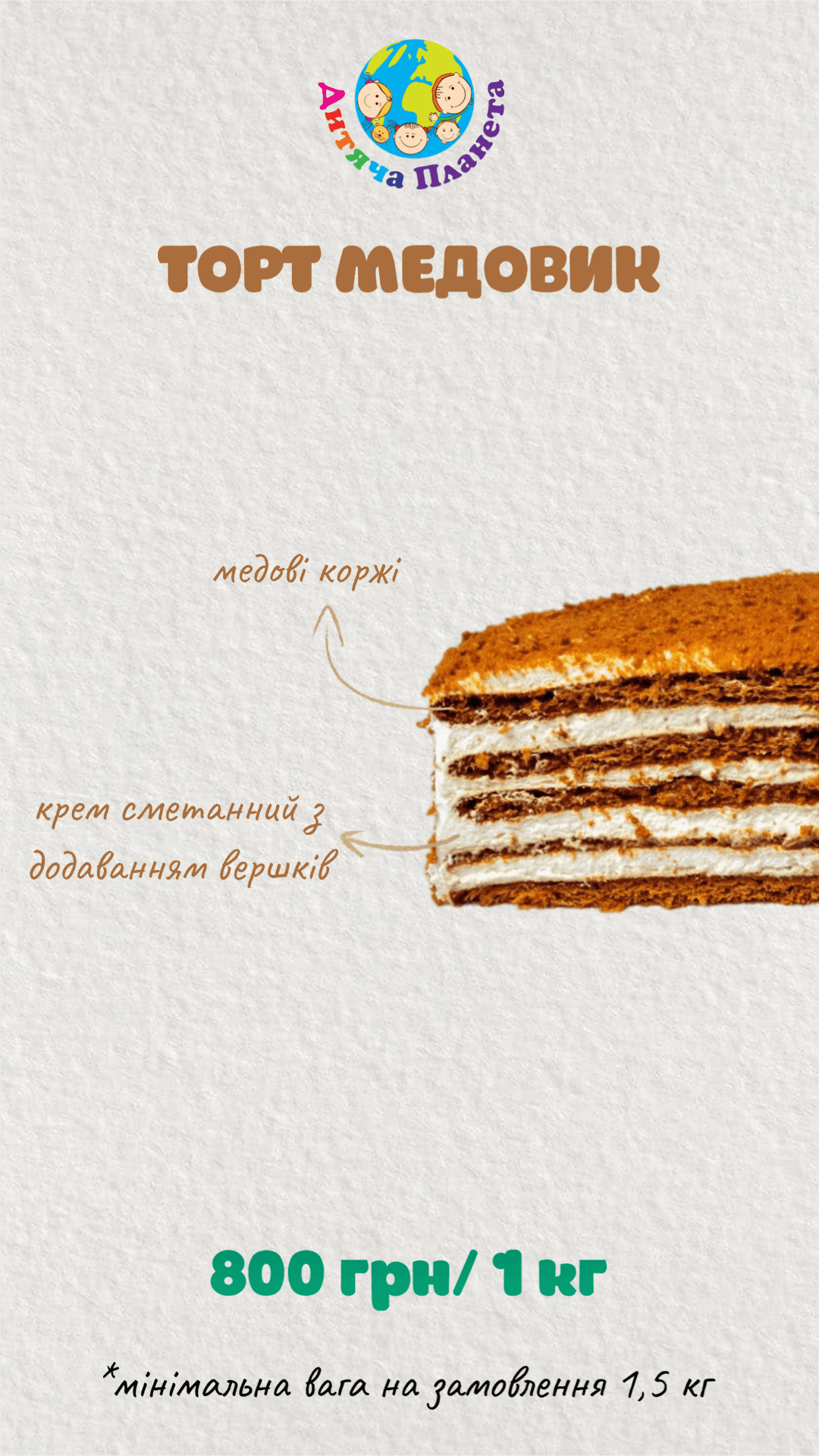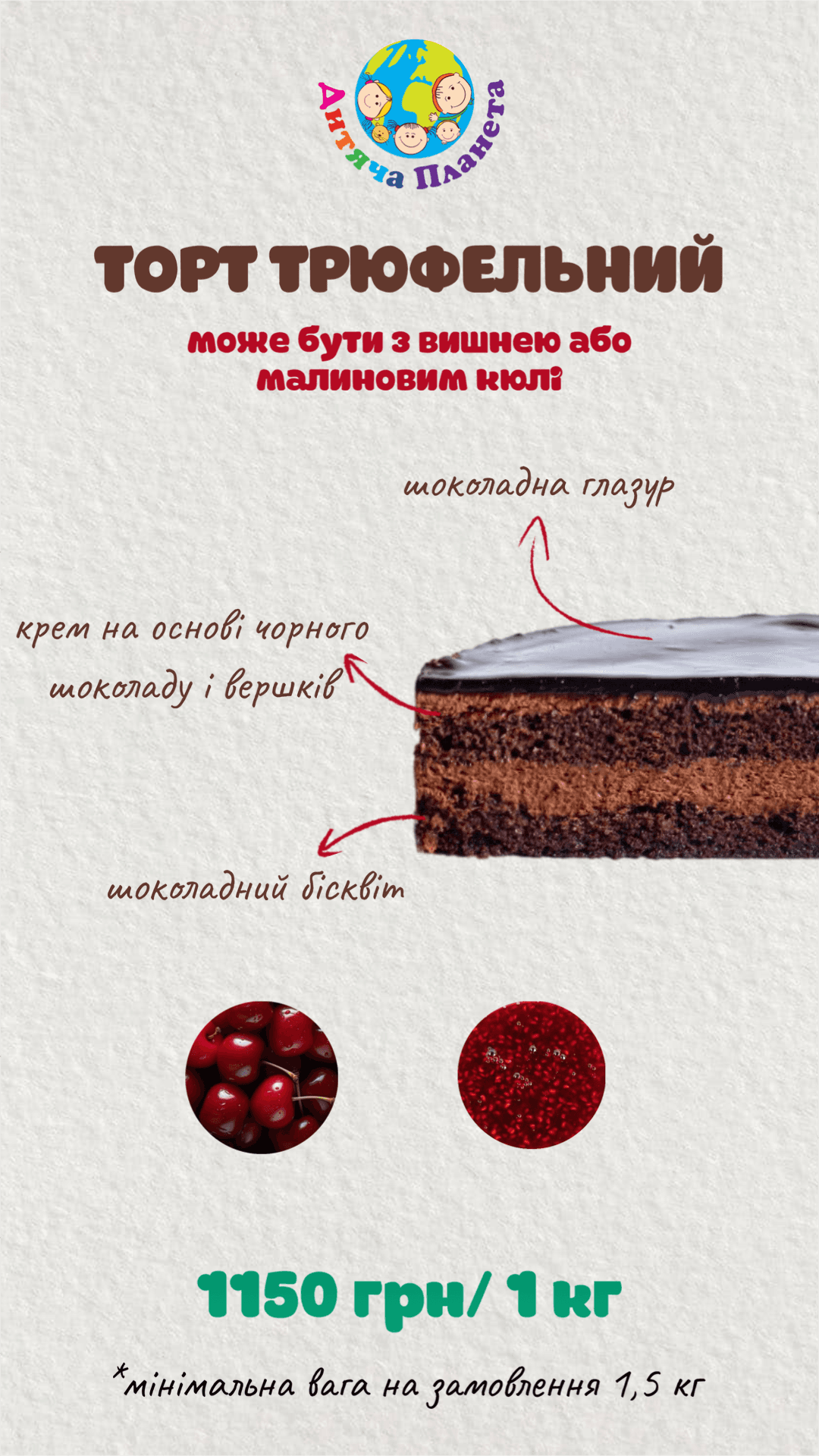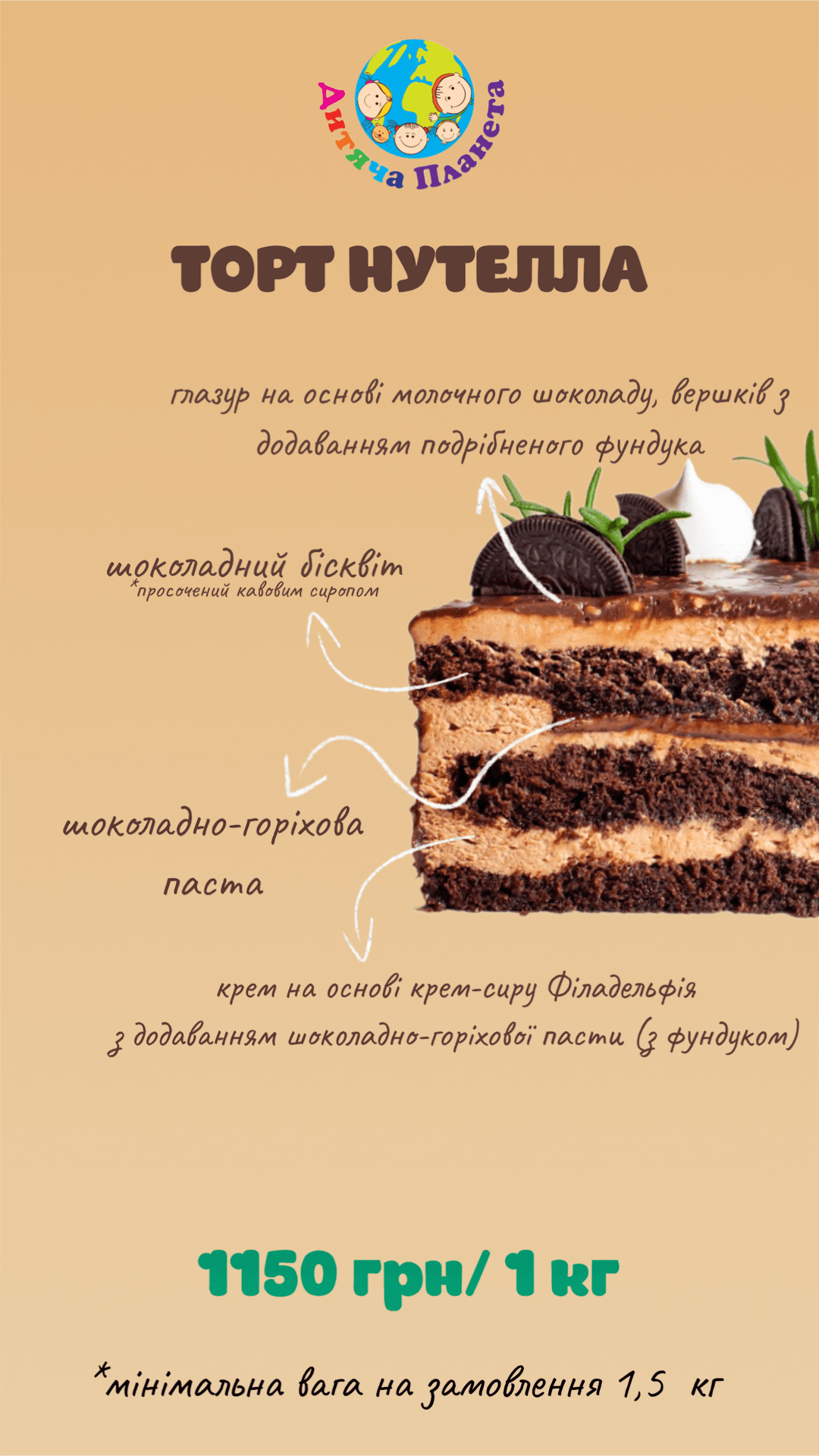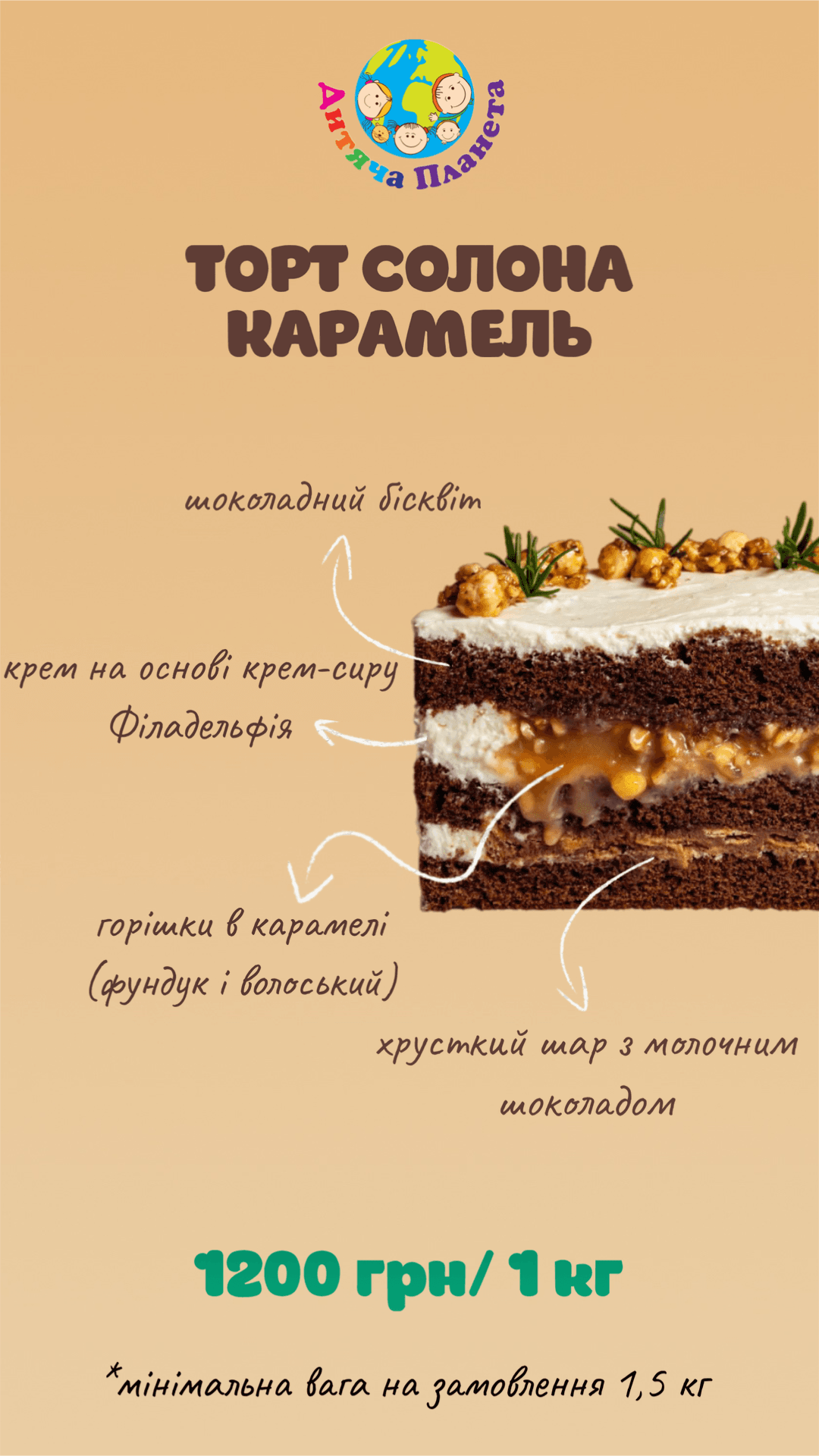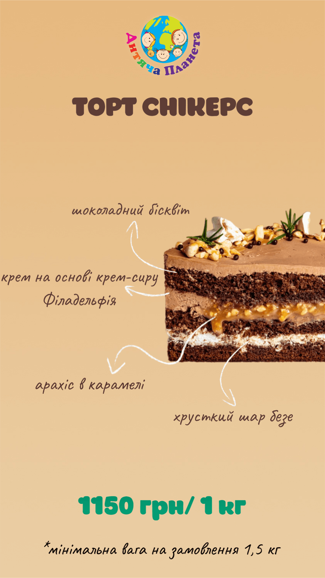 У власній кондитерській парку розваг «Дитяча Планета» у Cosmo Multimall на вас чекають неповторні торти та десерти нашого власного виробництва. Ми готові створити для вашого свята торт із будь-яким декором та улюбленим героєм вашої дитини — чи то на день народження, випускний, чи будь-яке інше свято. Навіть просто завітавши до нас відпочити, ви зможете обрати сві